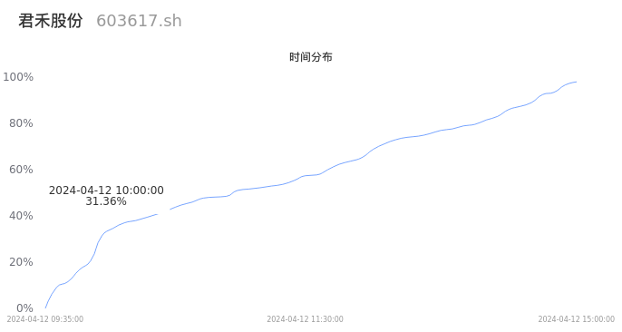 603617君禾股份2024年04月12日成交5.43万手,成交金额3388.62万元,相较昨日缩量2109手,换手率1.42%,成交清淡。