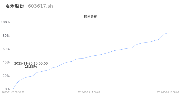 603617君禾股份2025年11月26日成交6.87万手,成交金额5091.08万,相较昨日放量1.74万手,换手率1.79%,成交清淡。