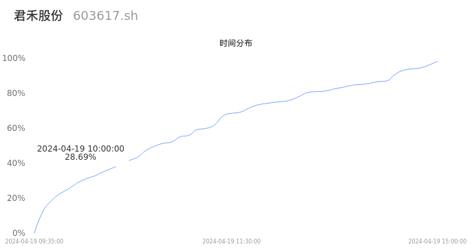 603617君禾股份2024年04月19日成交6.92万手,成交金额3848.47万元,相较昨日缩量3.13万手,换手率1.81%,成交清淡。
