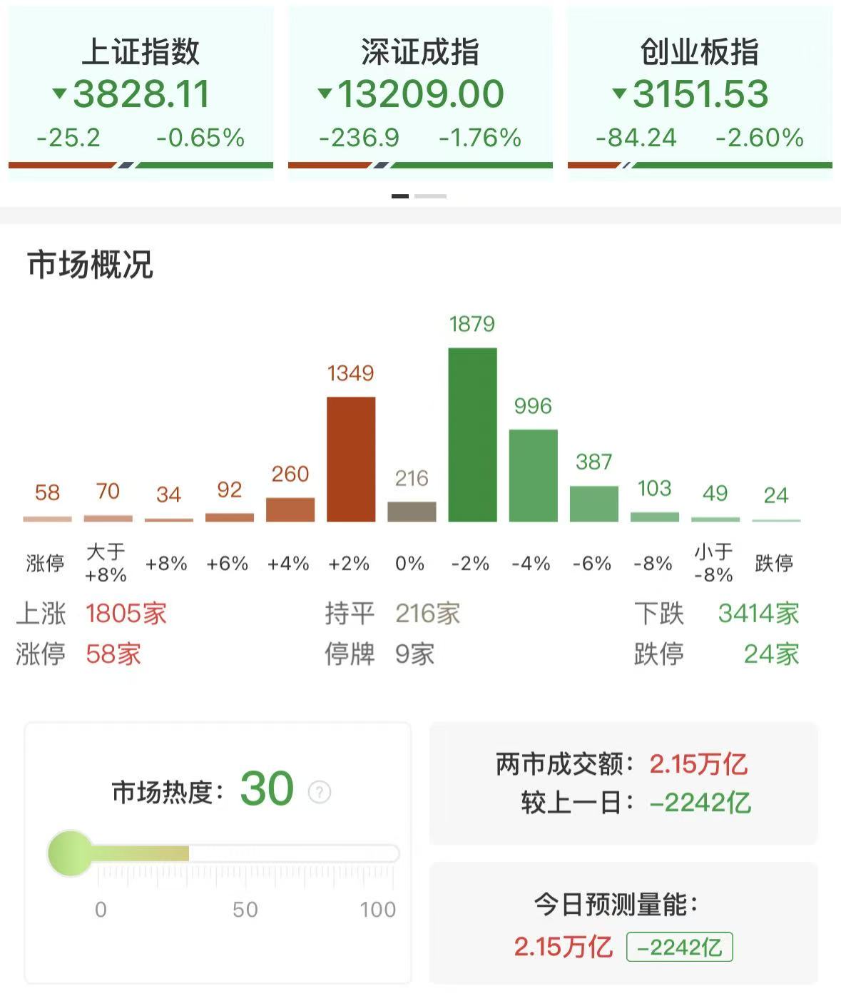 【每日收评】创业板指震荡走低跌2.6%,科技股集体熄火,高位人气股大面积退潮
