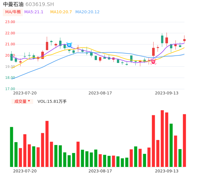 值得注意的是:2023年09月中信建投的邓胜分析师,首次发布关于中曼石油的研究报告,标题为:中曼石油(603619):23H1业绩大增 原油产量快速提升且未来增量显著。