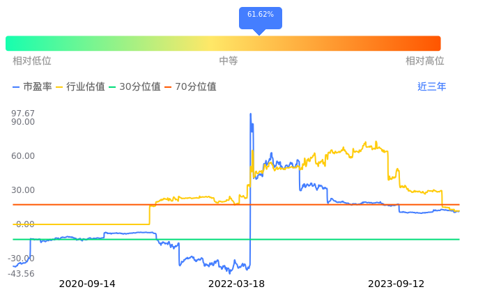 2023年09月12日,中曼石油下跌1.19%收于20.77,今日成交金额1.11亿元。下文将从市盈率PETTM、市净率PB、市现率3个角度去分析公司估值情况。