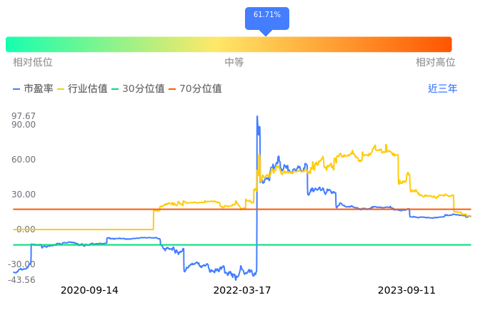 2023年09月11日,中曼石油上涨1.79%收于21.02,今日成交金额1.97亿元。下文将从市盈率PETTM、市净率PB、市现率3个角度去分析公司估值情况。