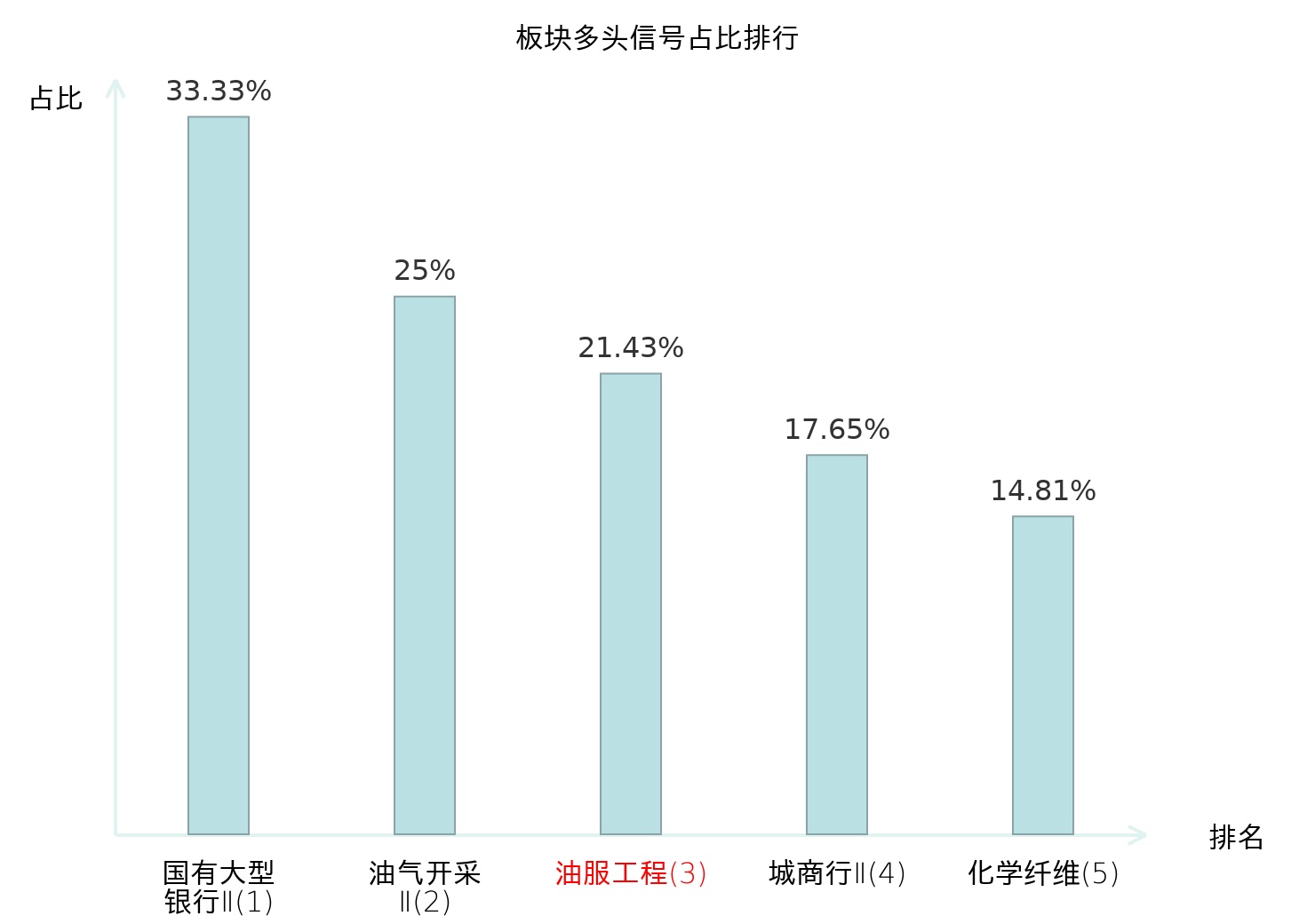 全市场所有行业板块中主力多头信号占比排名中,国有大型银行Ⅱ板块位居第一。国有大型银行Ⅱ板块名次提升最快,较昨日上升124位。