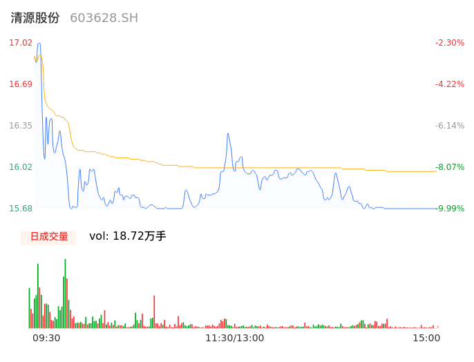 04月16日,清源股份收报15.68,股价涨幅-9.99%,成交金额2.99亿元,换手率6.84%。