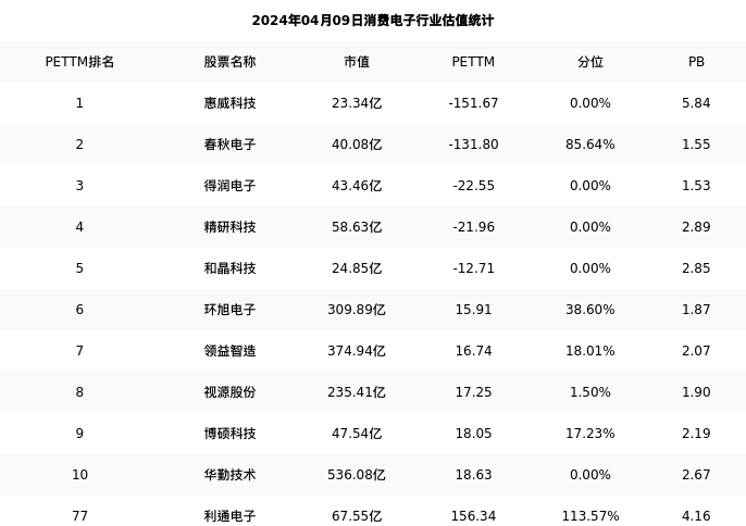 从估值角度看:利通电子最新市盈率PETTM为156.34,在行业内排名72/95,处于113.57分位。