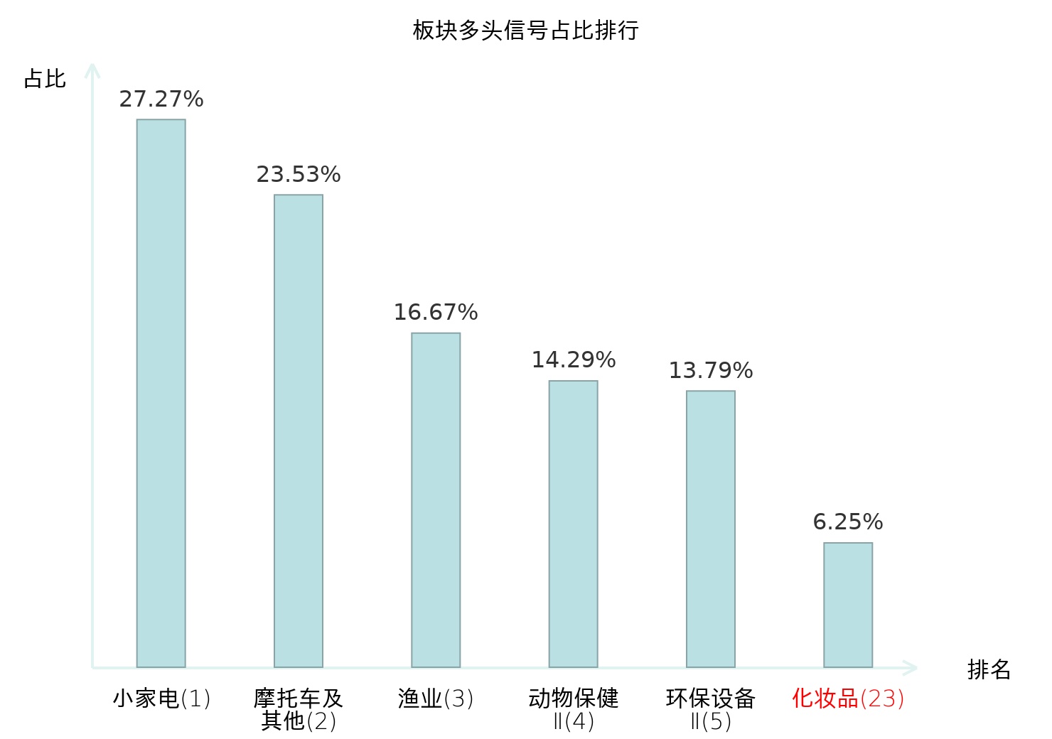 从主力宝信号数据分析,拉芳家化所属的化妆品板块中共1只股票发出主力多头信号,主力多头信号占比在全行业中排名第23位,较昨日上升82位。排名的显著上升表明主力当日买入意愿较强,为投资者提供了积极的市场情绪和潜在投资机会的参考。全市场所有行业板块中,小家电板块的主力多头信号占比最高,位居第一;渔业板块名次提升最快,较昨日上升122位。这些变化揭示了不同行业间主力资金动向的趋势,有助于投资者把握市场情绪和潜在的投资机会。