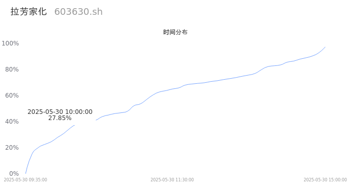根据成交分布分析,该股票当天缩量成交,成交清淡。时间上看,早盘前半小时成交量占据当天总成交量的27.85%;价格上看,成交呈现左偏峰。成交分布分析主要研究股票成交的分布特性,不具有预测功能,请知悉。