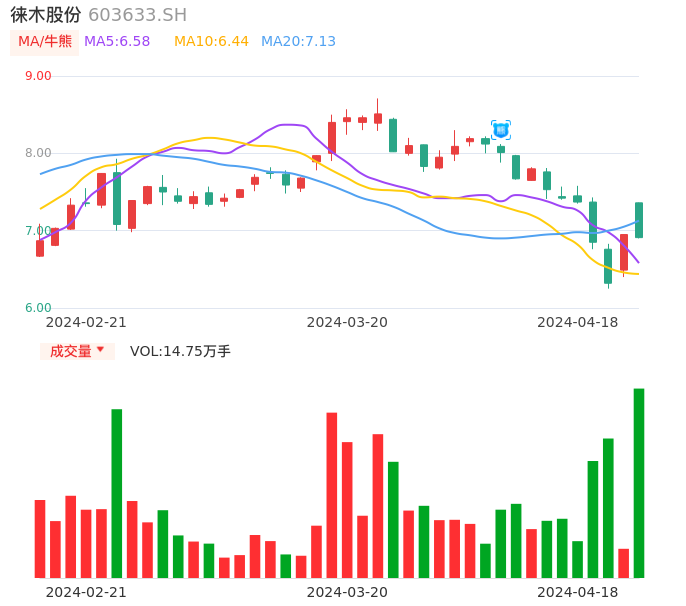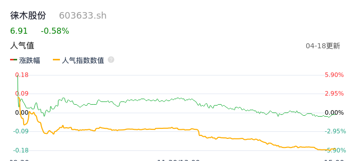 04月18日,徕木股份收报6.91,股价涨幅-0.58%,成交金额1.04亿元,换手率3.46%。