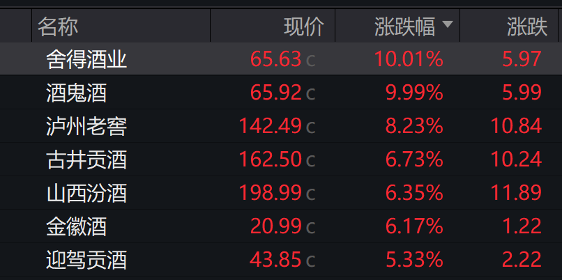 食品、白酒、免税店、旅游方向齐走强,舍得酒业、酒鬼酒、锦江酒店、首旅酒店、中国中免、东百集团等多股涨停。