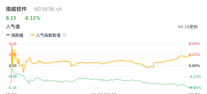 04月16日,南威软件收报8.15,股价涨幅-8.12%,成交金额1.25亿元,换手率2.52%。