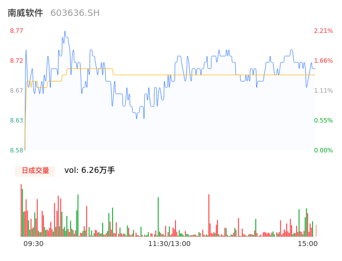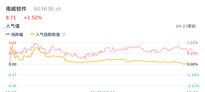 04月23日,南威软件收报8.71,股价涨幅1.52%,成交金额5447.73万元,换手率1.06%。