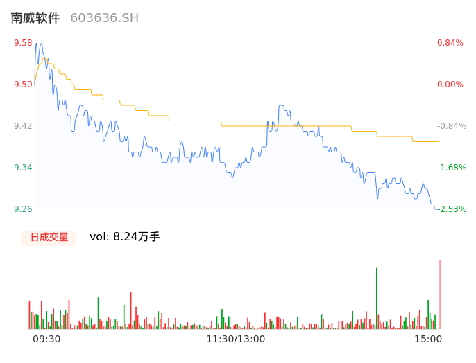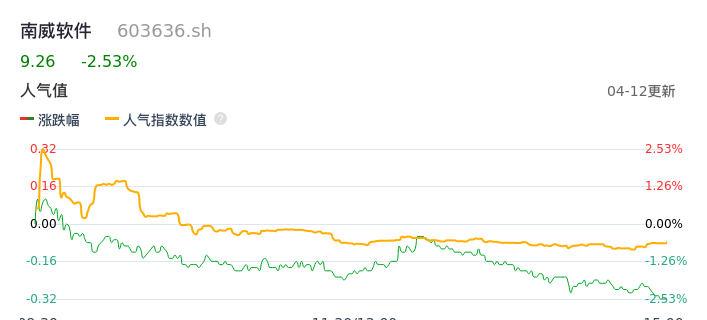 04月12日,南威软件收报9.26,股价涨幅-2.53%,成交金额7733.79万元,换手率1.40%。
