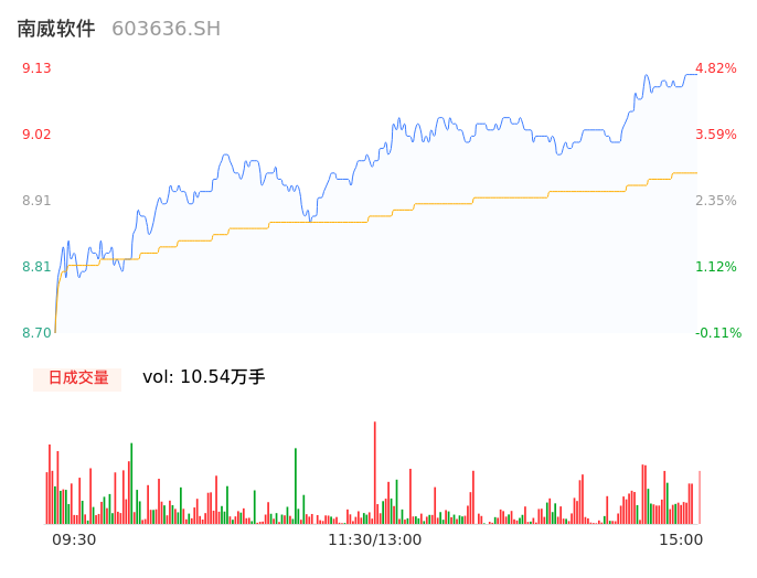 04月24日,南威软件收报9.13,股价涨幅4.82%,成交金额9451.55万元,换手率1.78%。