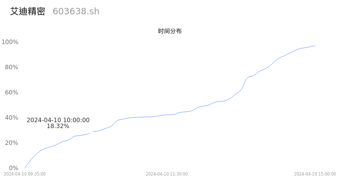 603638艾迪精密2024年04月10日成交1.52万手,成交金额2410.78万元,相较昨日放量4495手,换手率0.18%,成交清淡。