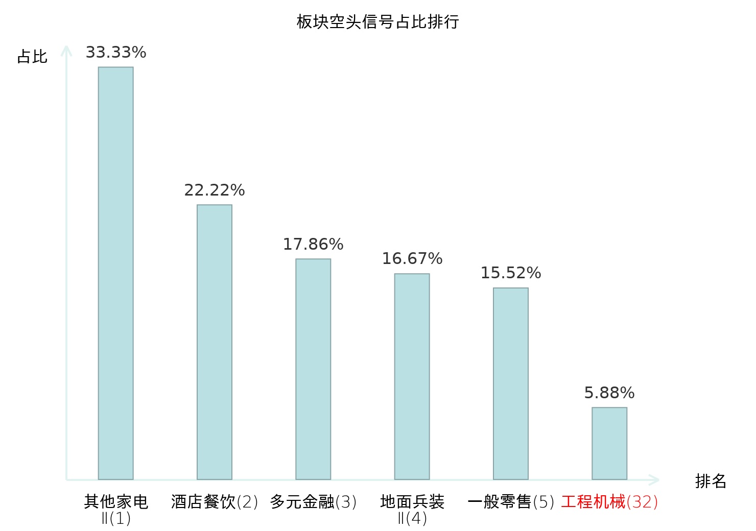 全市场所有行业板块中主力空头信号占比排名中,其他家电Ⅱ板块位居第一。广告营销板块名次提升最快,较昨日上升111位。