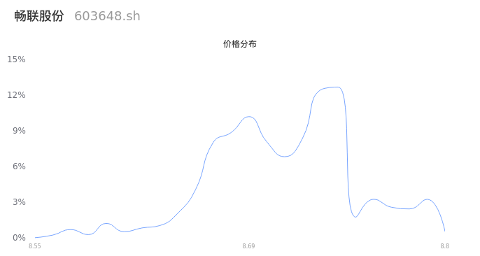 根据成交分布分析,该股票当天放量成交,成交清淡。时间上看,早盘前半小时成交量占据当天总成交量的22.95%;价格上看,成交呈现右偏峰。成交分布分析主要研究股票成交的分布特性,不具有预测功能,请知悉。