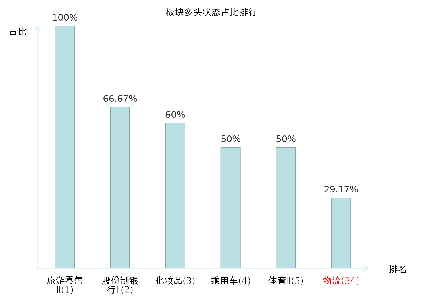 全市场所有行业板块中主力多头状态占比排名中,旅游零售Ⅱ板块位居第一。旅游零售Ⅱ板块名次提升最快,较昨日上升130位。