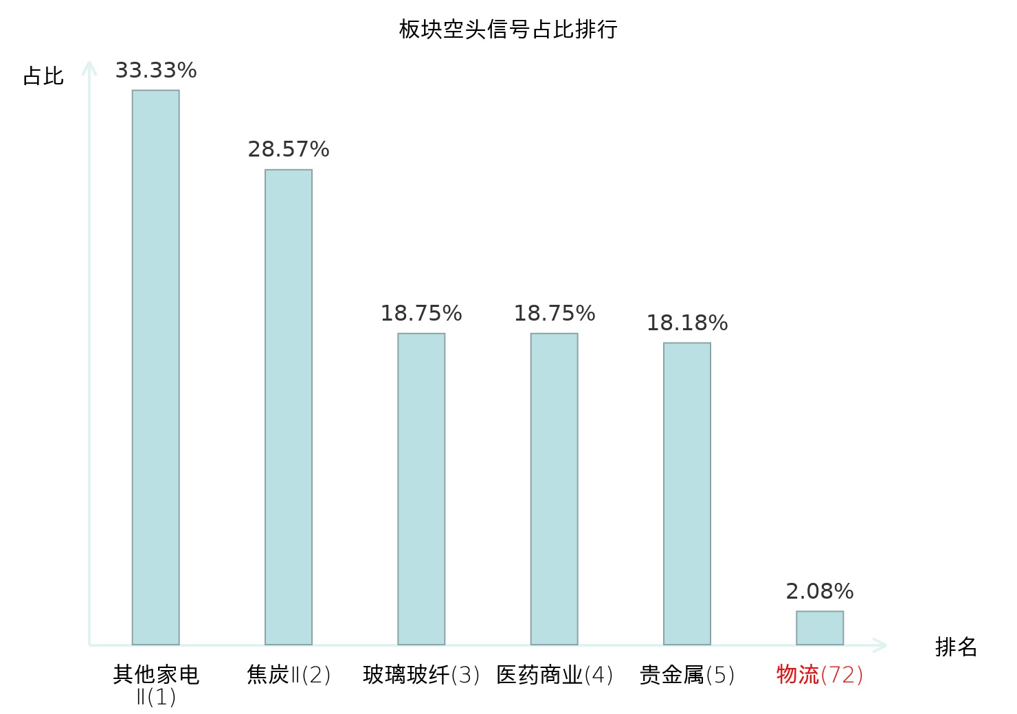 全市场所有行业板块中主力空头信号占比排名中,其他家电Ⅱ板块位居第一。工业金属板块名次提升最快,较昨日上升114位。