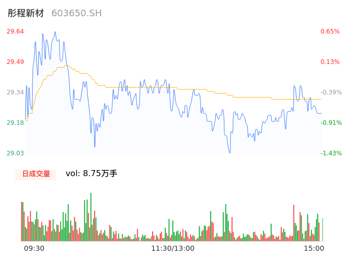 04月26日,彤程新材收报29.22,股价涨幅-0.78%,成交金额2.56亿元,换手率1.47%。
