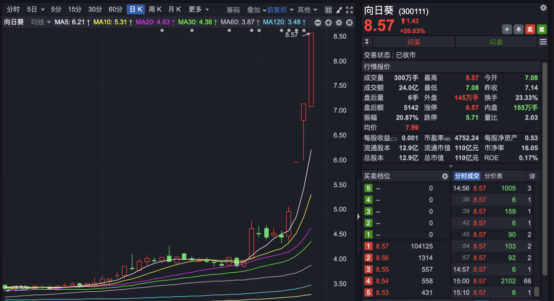 A股,两大板块全线爆发!300111,连续3天20%涨停!