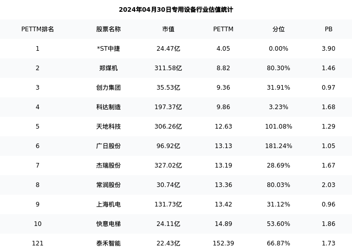 从估值角度看:泰禾智能最新市盈率PETTM为152.39,在行业内排名121/167,处于66.87分位。