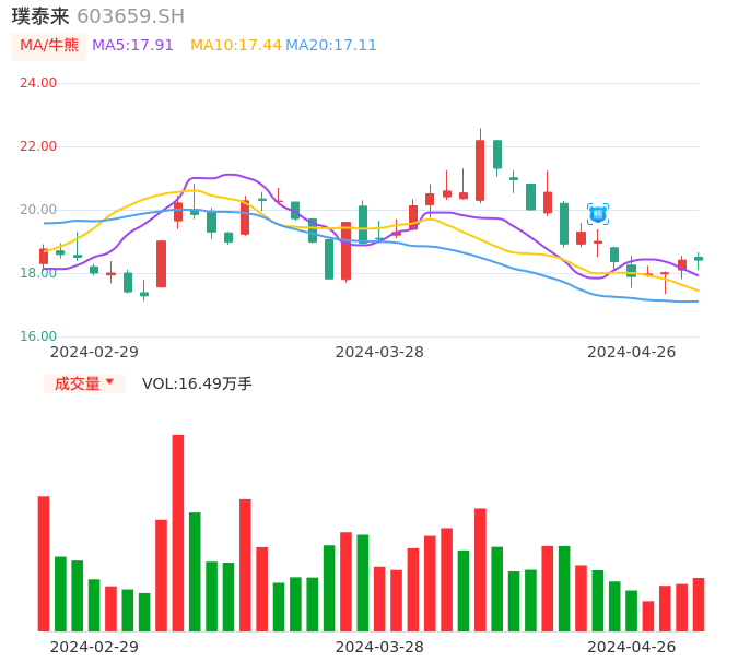04月26日,璞泰来收报18.41,股价涨幅0.00%,成交金额3.03亿元,换手率0.82%。