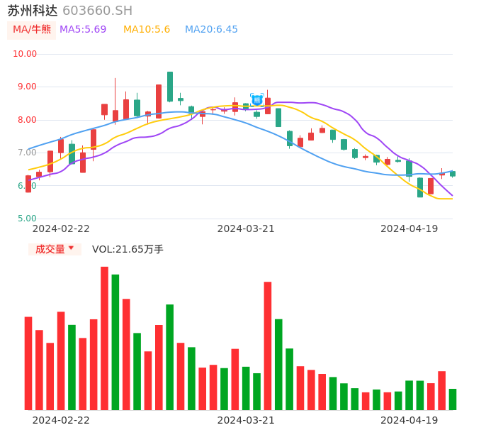 苏州科达在3月22日出现日线级别熊点,虽然60分钟处于牛点区间,短期有所弱势反弹,但股价目前整体处于中期下降通道,建议在日线级别未转为牛点信号前继续谨慎观望。