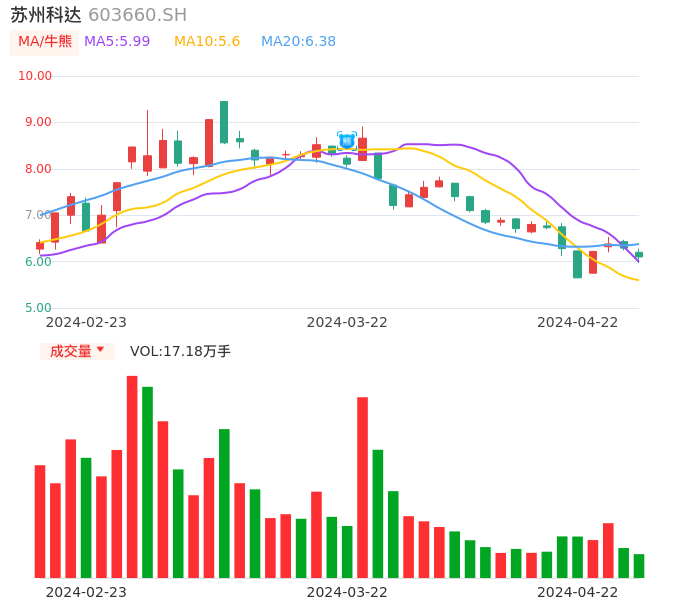 04月22日,苏州科达收报6.10,股价涨幅-3.02%,成交金额1.06亿元,换手率3.48%。