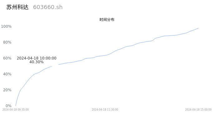 根据成交分布分析,该股票当天放量成交,成交清淡。时间上看,早盘前半小时成交量占据当天总成交量的40.3%;价格上看,成交呈现中间峰。成交分布分析主要研究股票成交的分布特性,不具有预测功能,请知悉。