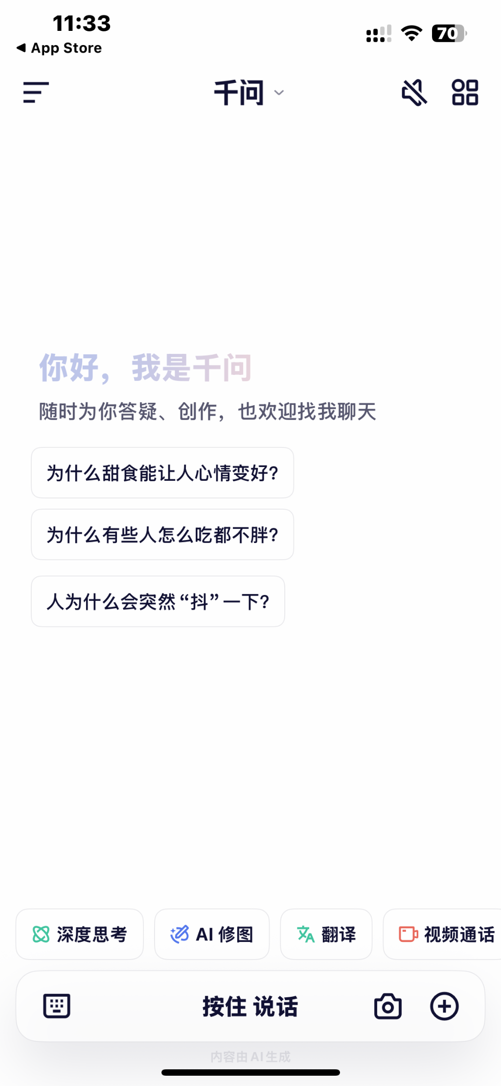 此外,应用还集成了图像生成、AI修图、视频通话、实时翻译等多种功能,并通过强大的意图识别能力,允许用户在一个对话框内完成多样化任务。