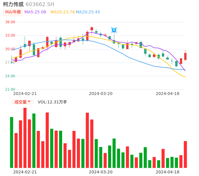 04月18日,柯力传感收报29.09,股价涨幅4.19%,成交金额3.56亿元,换手率4.38%。