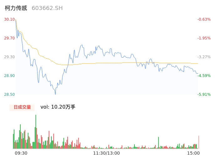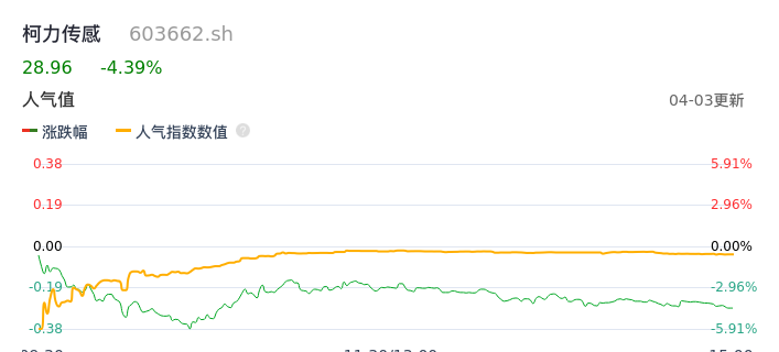 04月03日,柯力传感收报28.96,股价涨幅-4.39%,成交金额2.97亿元,换手率3.63%。