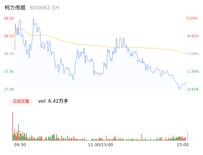 04月12日,柯力传感收报27.70,股价涨幅-2.29%,成交金额1.80亿元,换手率2.29%。