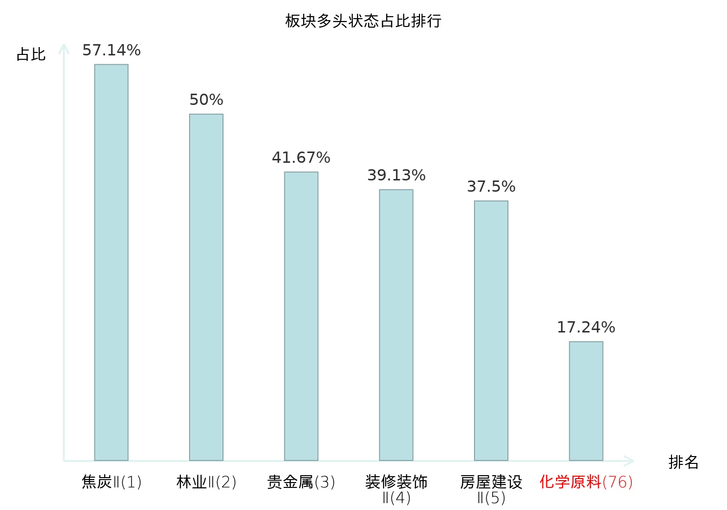 全市场所有行业板块中主力多头状态占比排名中,焦炭Ⅱ板块位居第一。白色家电板块名次提升最快,较昨日上升84位。