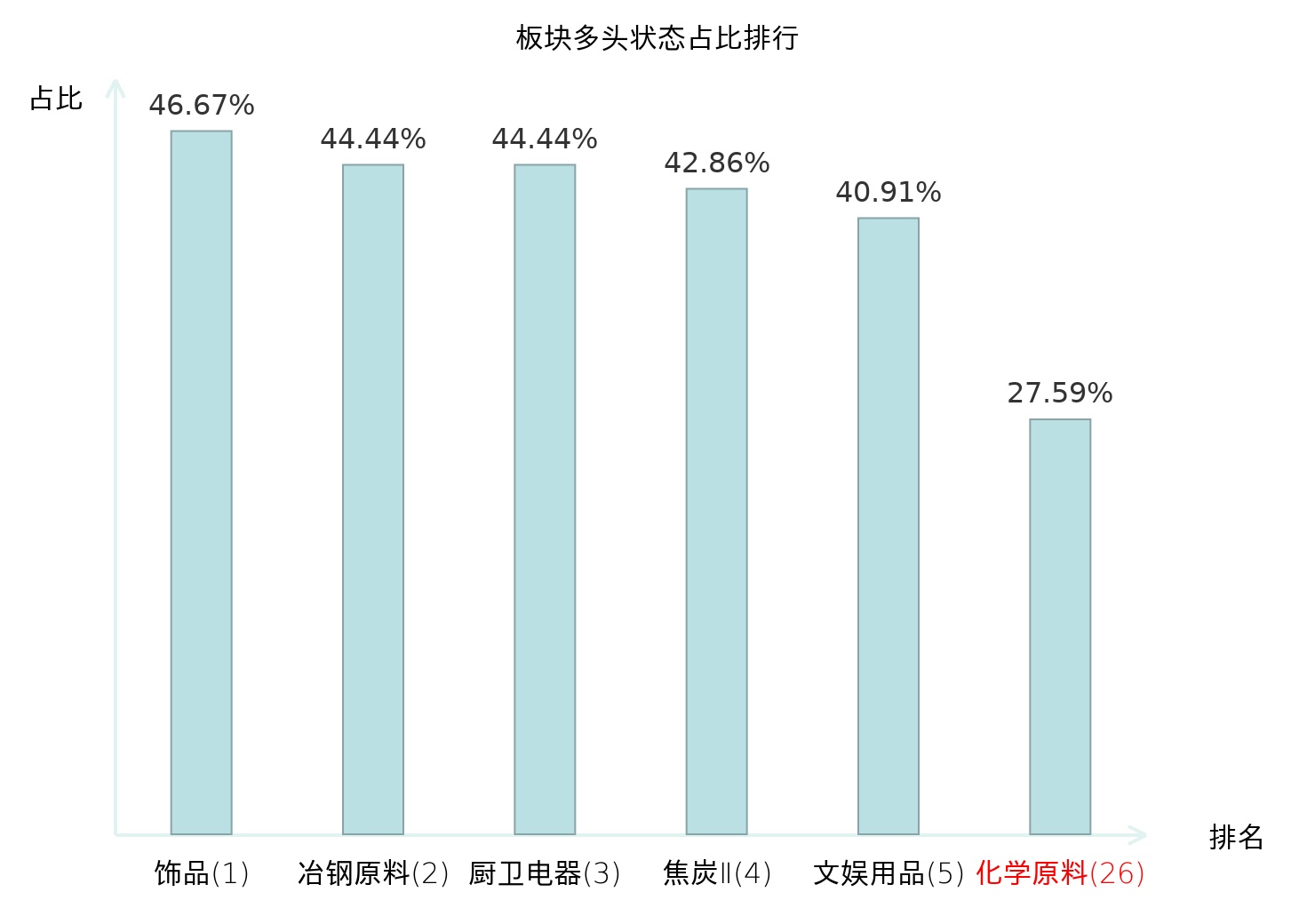全市场所有行业板块中主力多头状态占比排名中,饰品板块位居第一。专业连锁Ⅱ板块名次提升最快,较昨日上升68位。