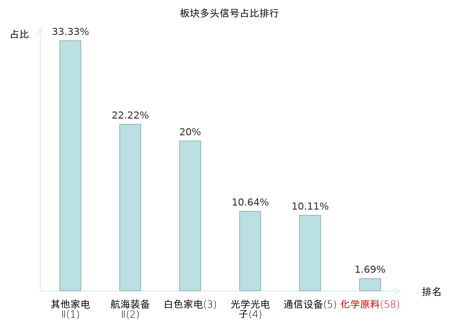 全市场所有行业板块中主力多头信号占比排名中,其他家电Ⅱ板块位居第一。其他家电Ⅱ板块名次提升最快,较昨日上升128位。
