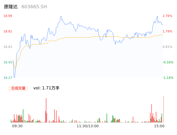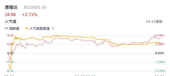 04月25日,康隆达收报18.98,股价涨幅2.71%,成交金额3204.93万元,换手率1.06%。