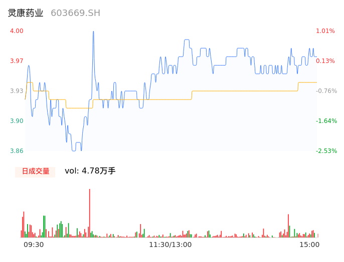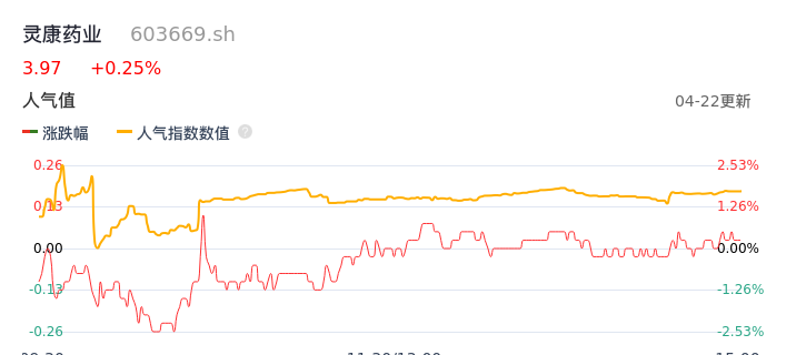 04月22日,灵康药业收报3.97,股价涨幅0.25%,成交金额1880.89万元,换手率0.66%。