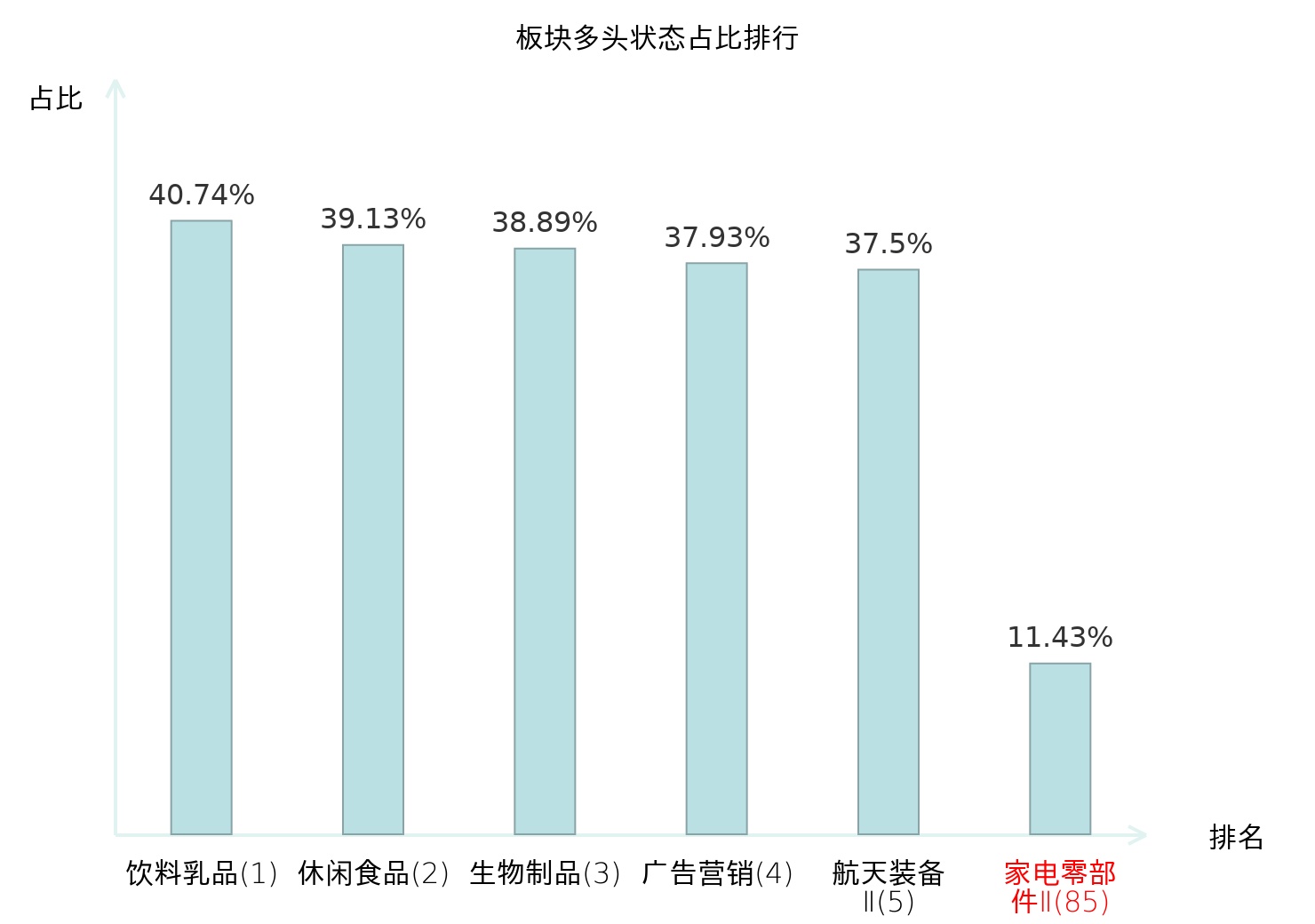 全市场所有行业板块中主力多头状态占比排名中,饮料乳品板块位居第一。国有大型银行Ⅱ板块名次提升最快,较昨日上升71位。