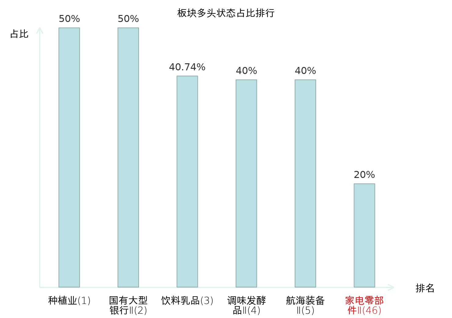 全市场所有行业板块中主力多头状态占比排名中,种植业板块位居第一。冶钢原料板块名次提升最快,较昨日上升89位。