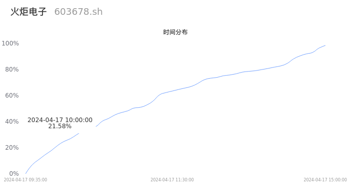 603678火炬电子2024年04月17日成交3.23万手,成交金额6397.41万元,相较昨日缩量1.39万手,换手率0.70%,成交清淡。