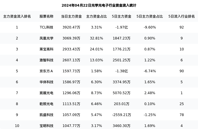 下表为今日行业内流入前10股票的信息