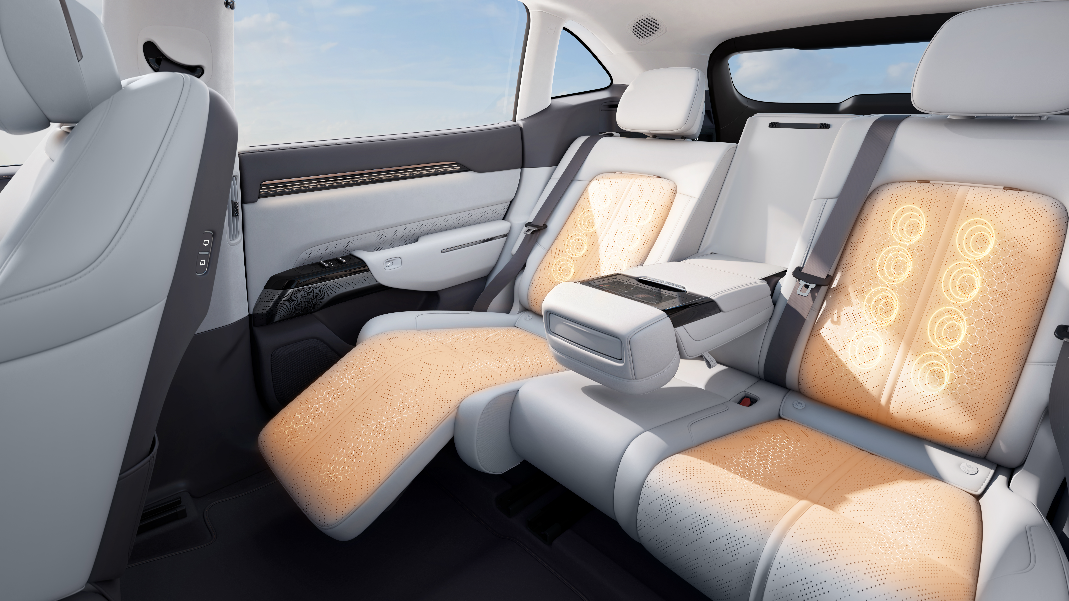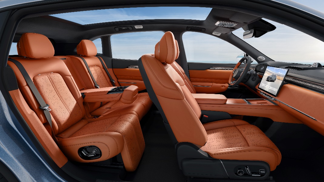 空间豪华感再进阶,采用极氪9X同款麂皮绒包覆顶棚,触感细腻亲肤;四门双层夹胶静音玻璃,座舱静谧性更佳;后排配备同级独有的座椅石墨烯加热,复刻顶级SPA热石疗法体验,轻松舒缓疲劳。还有后排电动躺椅、电动腿托、后排电动遮阳帘、后排电动桌板、后排电动智慧屏、后排中央扶手6英寸点触智慧屏等配置,都是百万级的越级豪华配置。