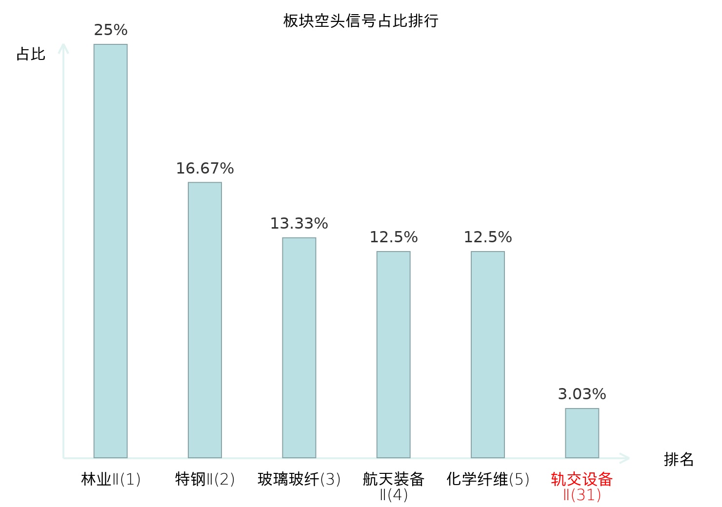全市场所有行业板块中主力空头信号占比排名中,林业Ⅱ板块位居第一。其他电源设备Ⅱ板块名次提升最快,较昨日上升115位。