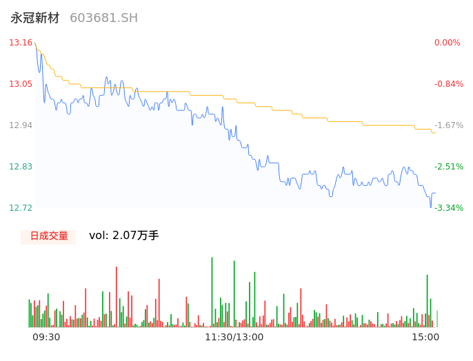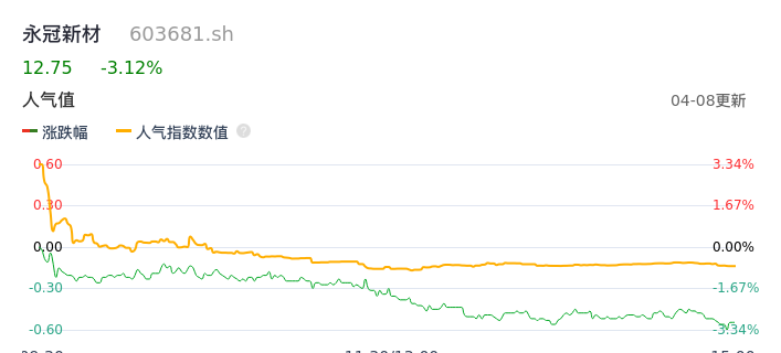 04月08日,永冠新材收报12.75,股价涨幅-3.12%,成交金额2668.72万元,换手率1.08%。