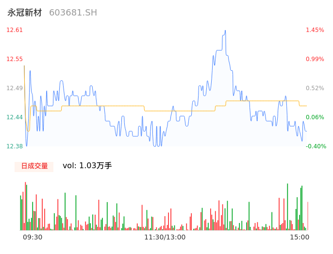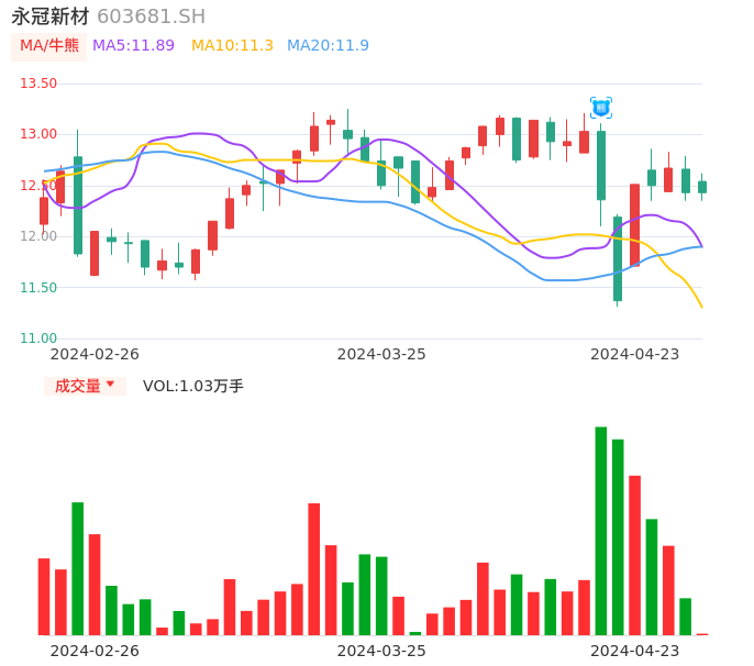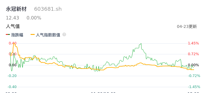 04月23日,永冠新材收报12.43,股价涨幅0.00%,成交金额1280.08万元,换手率0.54%。