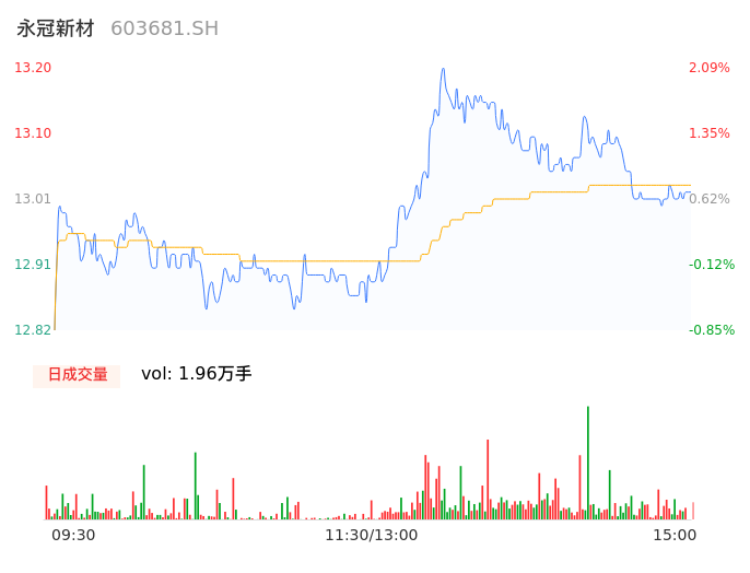 04月12日,永冠新材收报13.03,股价涨幅0.77%,成交金额2560.02万元,换手率1.03%。