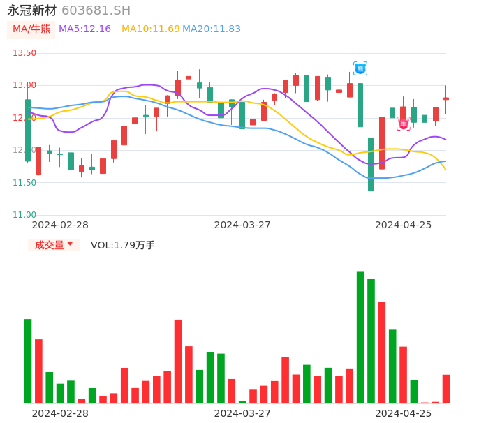 永冠新材牛熊点指标分析报告-20240425