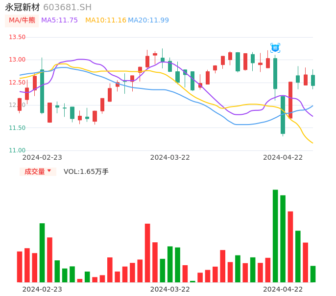 04月22日,永冠新材收报12.43,股价涨幅-1.89%,成交金额2052.49万元,换手率0.86%。